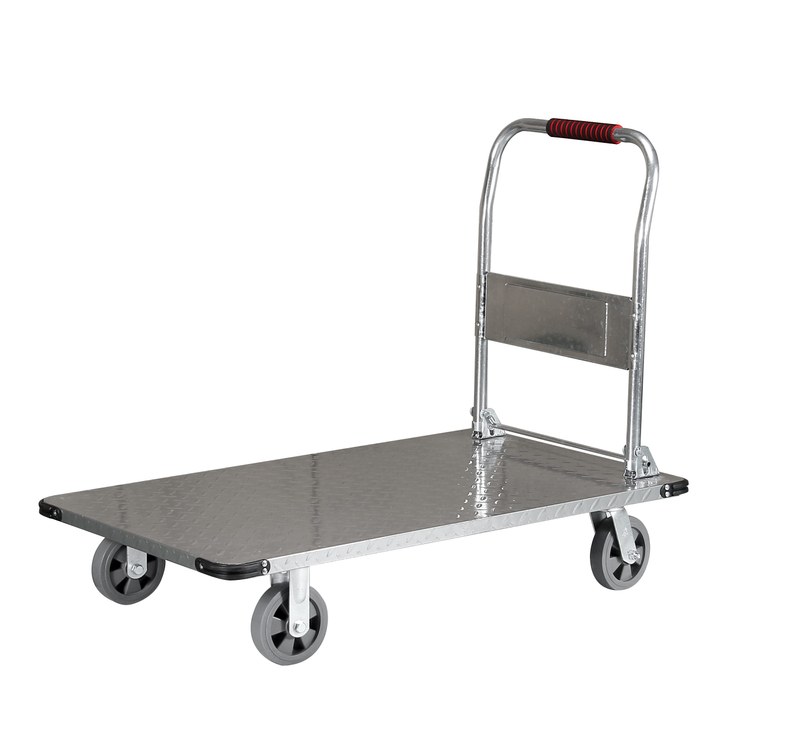 A4:其流线型设计允许一个人快速装载/卸载,无需额外帮助。平滑滚动的轮子减少了推/拉力,大平台意味着更少的行程(例如,移动一个完整的托盘而不是两个较小的负载)。