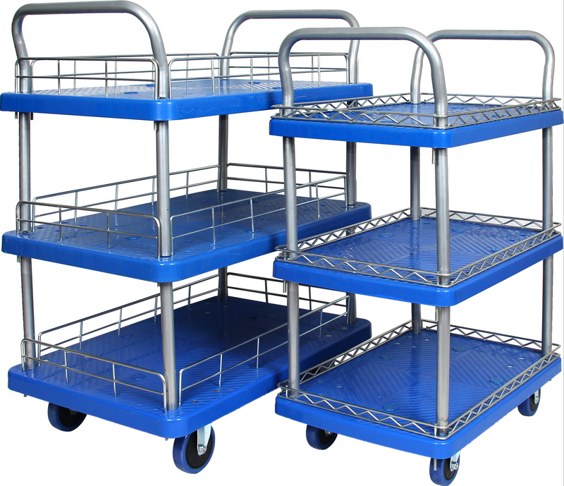 三层+围栏设计:三层比双层推车多提供50%的存储空间,而每层10-12厘米高的围栏可防止物品在移动过程中滑落。围栏采用层模成型,经久耐用,确保它们不会因频繁使用而脱落。